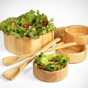 Rubber wood salad bowl, simple shape, in 7 pcs / set